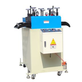 本機(jī)采用大型氣缸壓料,整平調(diào)整采用同步蝸輪蝸桿調(diào)節(jié),手柄轉(zhuǎn)動一圈,整平上輪僅下降1mm,可做精細(xì)調(diào)整;